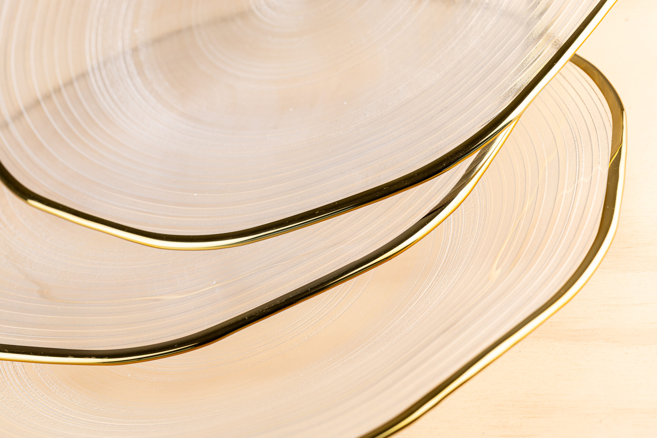 PLATO DE CRISTAL PATRON TEXTURIZADO, FILO DORADO