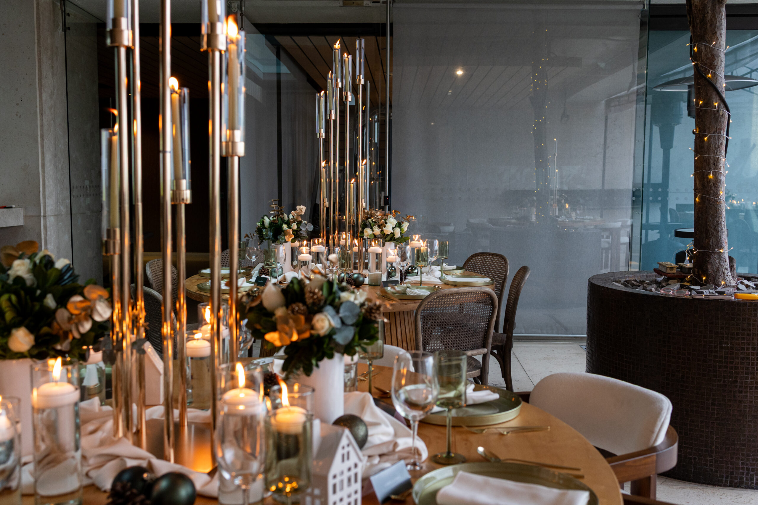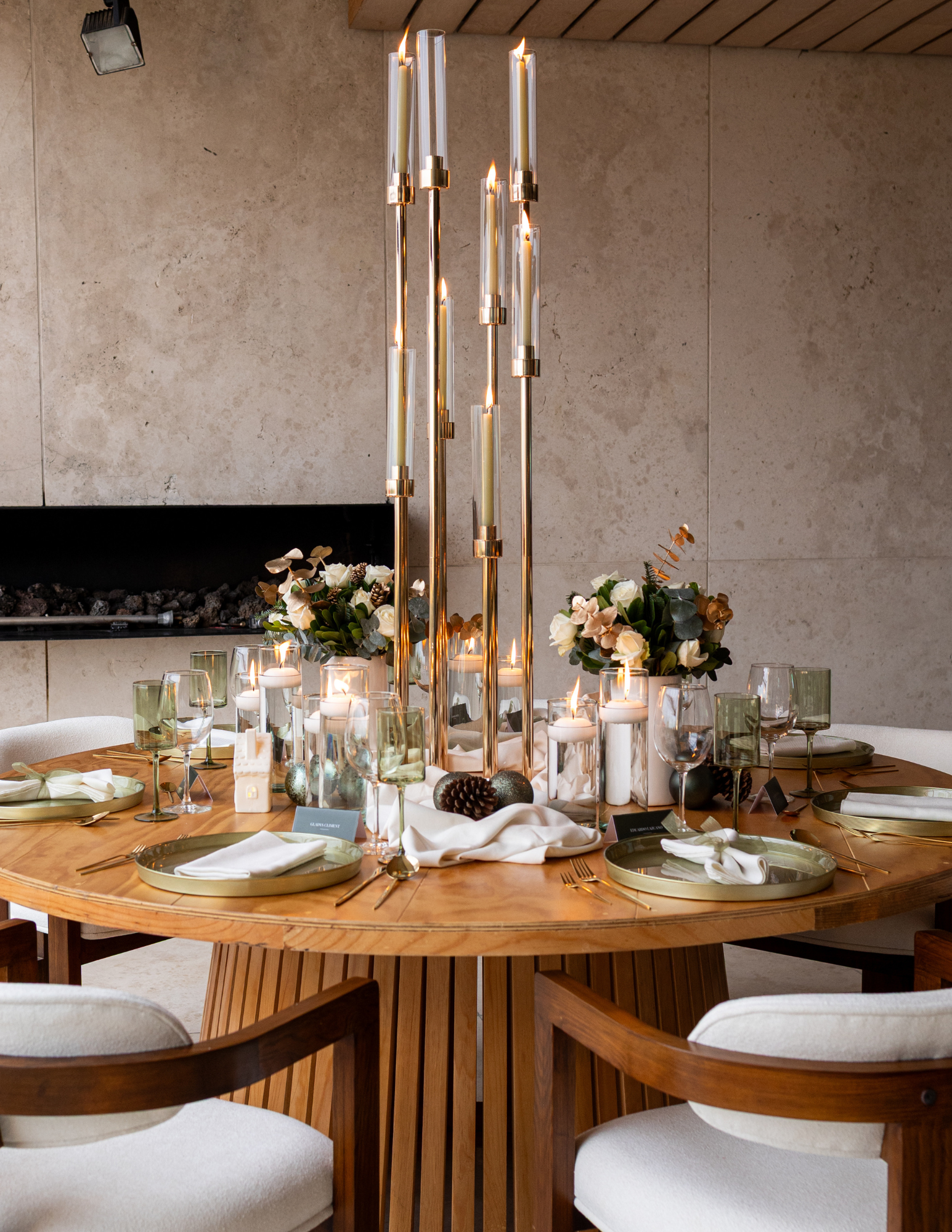 CANDELABRO CUADRADO DE METAL COLOR ORO CON 8 BRAZOS